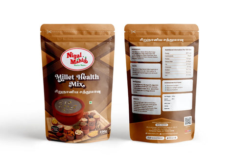 Millet Health Mix is a wholesome, nutrient-dense health drink made from a balanced blend of traditional millets that have been consumed for centuries in Indian diets. Rich in fibre, plant-based protein, vitamins, and essential minerals, Millet Health Mix supports digestion, sustained energy, weight management, and overall wellness. Prepared using traditional methods and free from preservatives, artificial colours, and refined sugar, Millet Health Mix is ideal for daily consumption by all age groups.