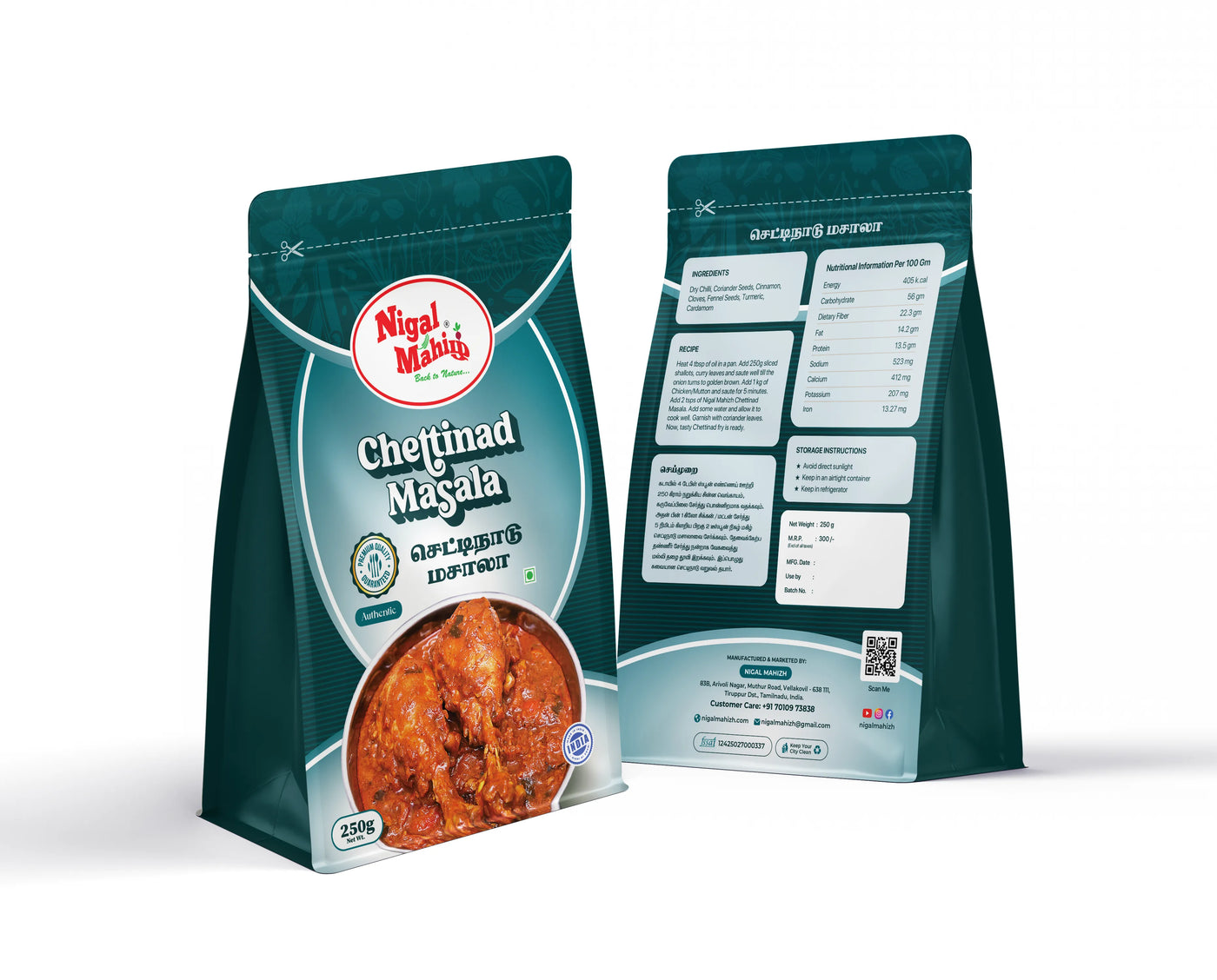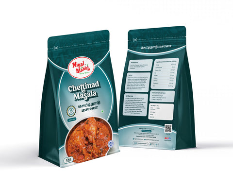 Chettinad Masala is a robust and aromatic spice blend inspired by the rich culinary heritage of the Chettinad region. Prepared using a distinctive mix of slow-roasted whole spices, Chettinad Masala delivers intense aroma, layered flavour, and authentic heat that defines Chettinad-style cooking. Free from preservatives, artificial colours, and additives, Chettinad Masala is ideal for traditional non-vegetarian and vegetarian Chettinad dishes.